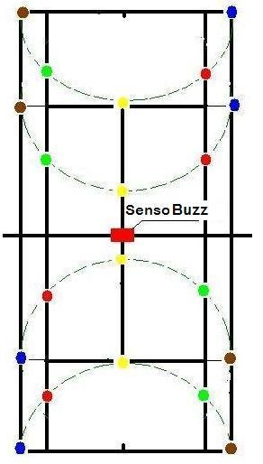 L’esaminando, seguendo il ritmo imposto dal SensoBuzz, deve spostarsi con corse a navetta (andata e ritorno) che ricreano le situazioni di gioco, da e verso un “traguardo” di riferimento relativo ad ogni singolo segnale emesso dallo strumento.
